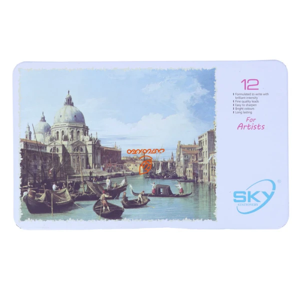 مداد رنگی 12 رنگ جعبه فلزی طرح اسکله مدل آرتیست اسکای SKY