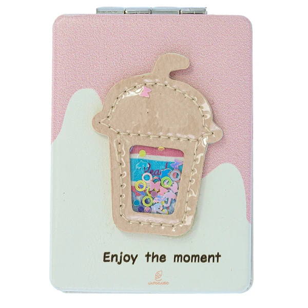 آینه مستطیلی جیبی (آرایشی) فانتزی طرح برجسته بستنی صورتی 095 (2)