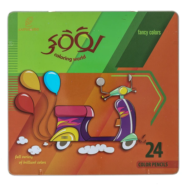 مداد رنگی 24 رنگ جعبه فلزی تخت طرح موتور لوکی LOOKY