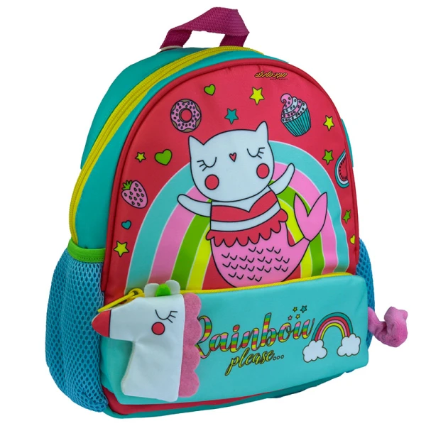 کوله-پشتی-مهد-کودکی-سبز-آبی-طرح-گربه-مدل