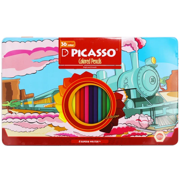 مداد رنگی 36 رنگ تخت فلزی طرح قطار پیکاسو