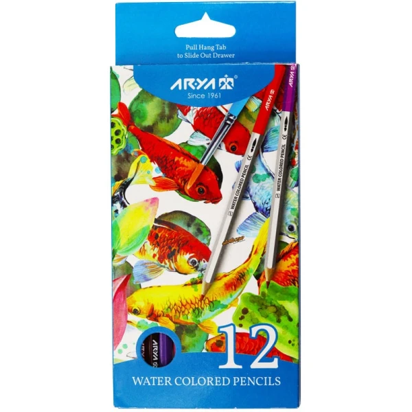 مداد آبرنگی 12 رنگ جعبه مقوایی آریا Arya
