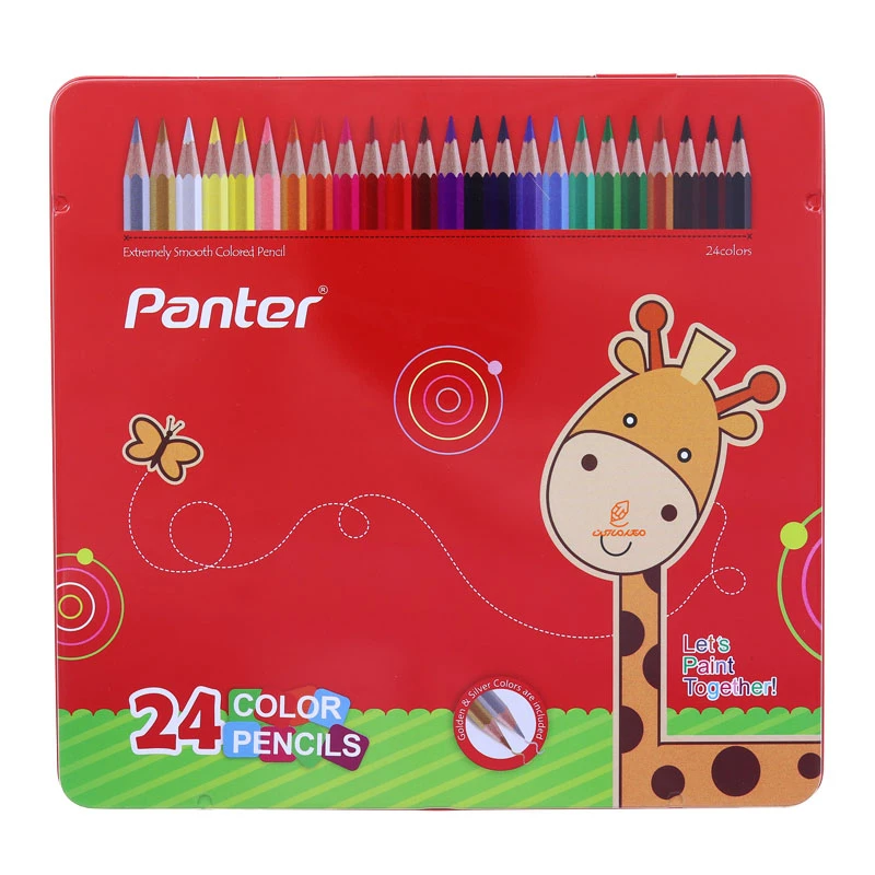 مداد رنگی 24 رنگ جعبه فلزی تخت طرح زرافه پنتر PANTER