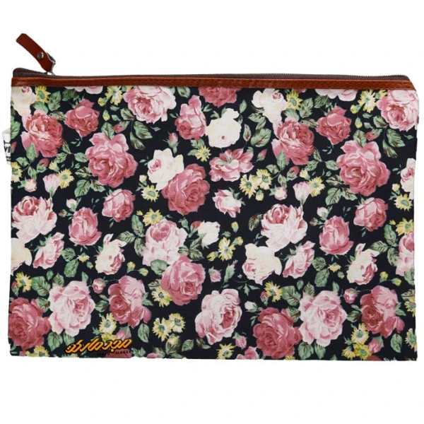 پوشه پارچه ای طرح گل درشت مشکی صورتی سویل
