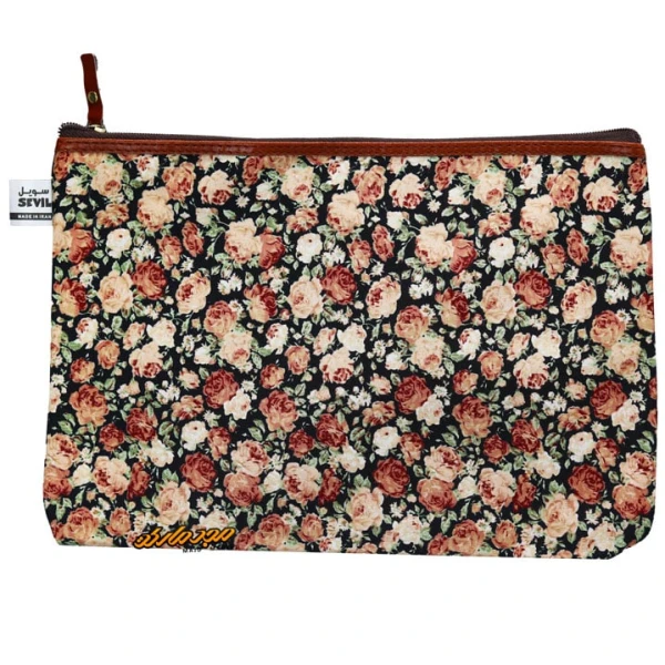 پوشه پارچه ای طرح گل ریز مشکی کرمی سویل