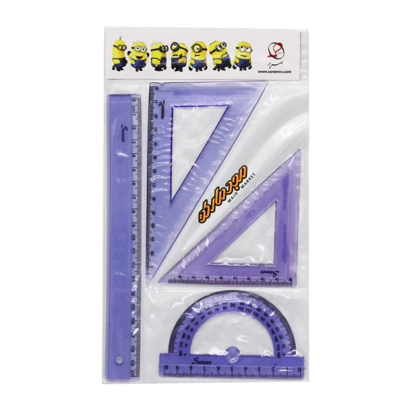 ست گونیا/نقاله ژله ای 4تیکه بنفش رنگ صریر
