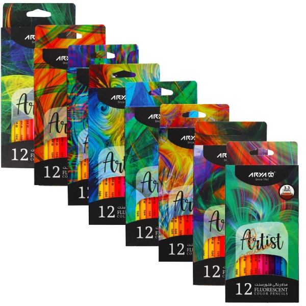 مداد-رنگی-12-رنگ-جعبه-مقوایی-فلورسنت-108-آری