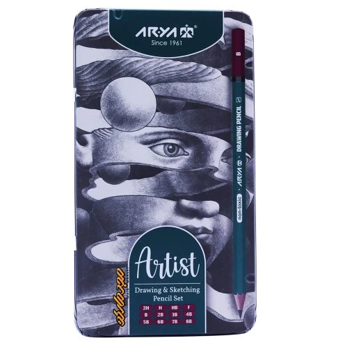 - ست 12 عددی مداد طراحی آرتیست آریا شامل انواع سختی مغز مداد در جعبه فلزی با طرح های گوناگون!