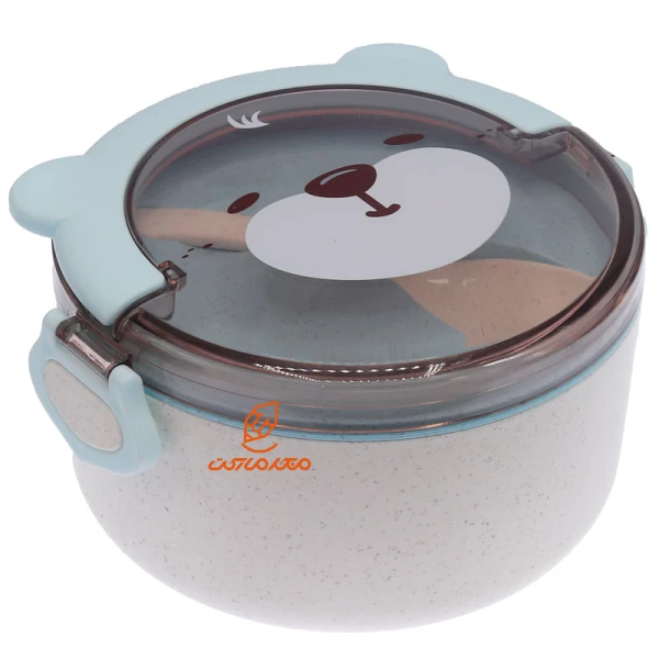 ظرف غذا گیاهی یک طبقه دایره ای سفید آبی طرح خرس